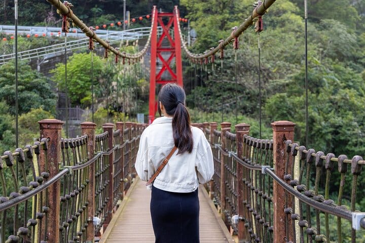 Then, stroll across the Lansheng Bridge and take the nostalgic Wulai Trolley through the valley to take photos at the magnificent Wulai Waterfall.